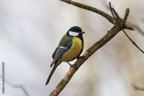© Jarosław Kochnio, Fototapeta premium A great tit sitting on a pine stick