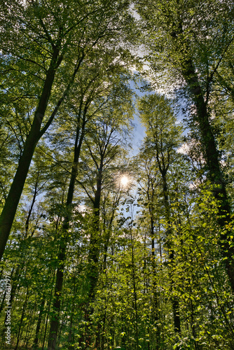 © AdobeTim82, Obraz premium a great view up into the trees direction sky