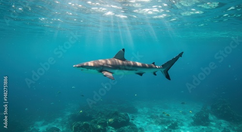 © ferifadli, Naklejka premium A great white shark in the ocean looking for prey