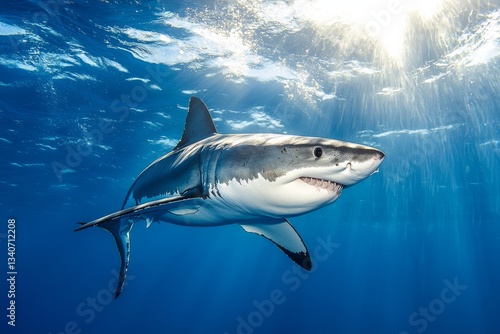 © grey, Fototapeta premium A great white shark swimming in the ocean