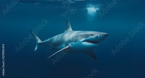 © Abdullah, Fototapeta premium A great white shark swimming near the surface