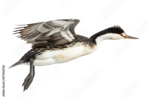 Obraz premium A grebe mid-dive, body streamlined, isolated on a white background