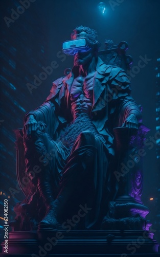 © Udula, Fototapeta premium a Greek god statue with advanced virtual box