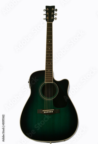 © Derrick Neill, Fototapeta premium A Green Acoustic Electric Guitar on White