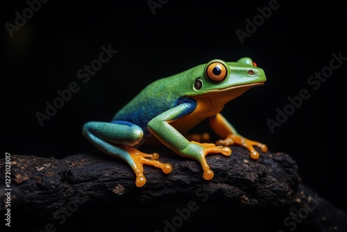 © cff999, Fototapeta premium a green and blue frog sitting on a branch