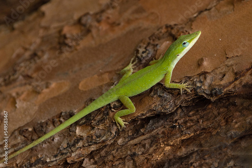 Fototapeta premium A green anole (Anolis carolinensis), a native Florida lizard, on the bark of...