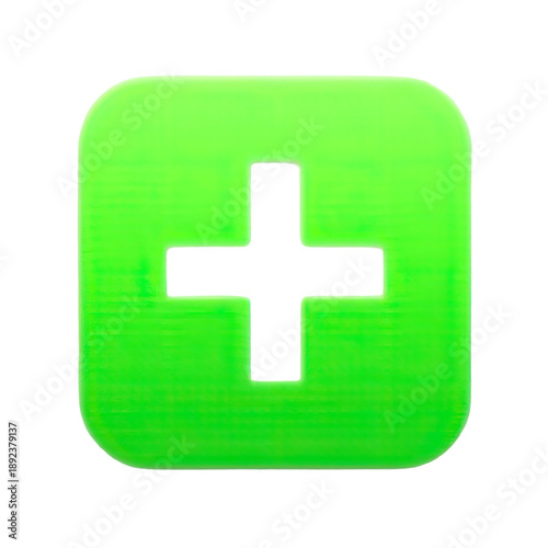 © Ева Поликарпова, Obraz premium A green button featuring a white cross icon