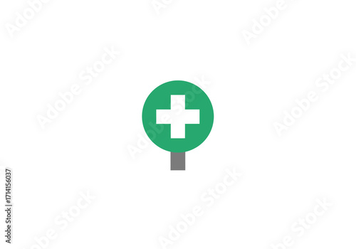 © Donjuan Studio, Obraz premium A green circle with a white plus sign is perched atop a gray rectangular post