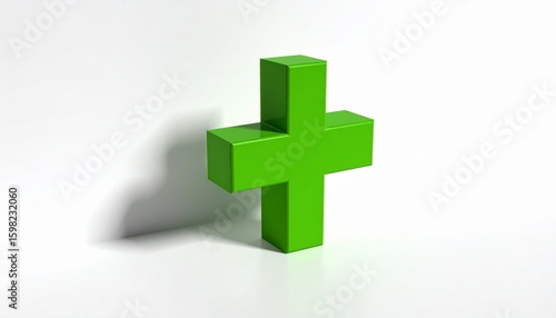 Fototapeta premium A green 3D plus sign symbol representing positivity, growth, and addition,...