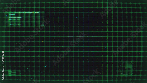 Fototapeta premium A green digital Sci-Fi style data screen featuring a grid with graphical data.