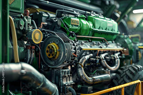 © mila103, Fototapeta premium A green engine with a yellow part on it
