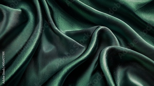 © Lakkhana, Obraz premium A green fabric with a subtle sheen and soft folds, creating a luxurious atmosphere