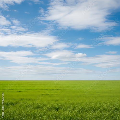 © MSTKolpana, Fototapeta premium A green field under a blue sky with white clouds