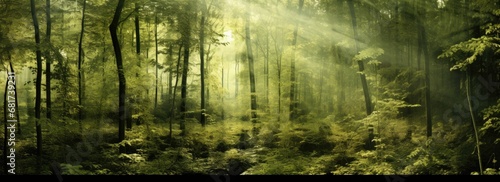 © SKIMP Art, Obraz premium a green forest with sunlight Generative AI