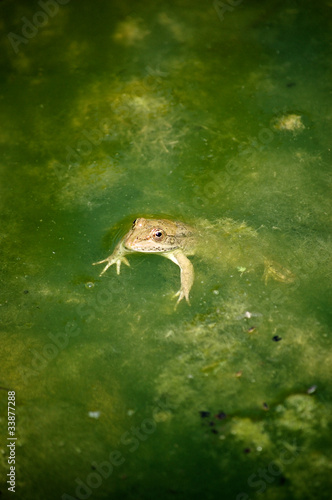 © trappy76, Obraz premium A green frog in a green creek