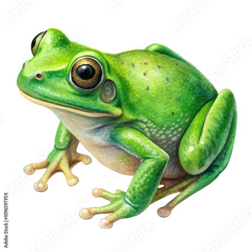 © Rehan, Obraz premium a green frog on white background