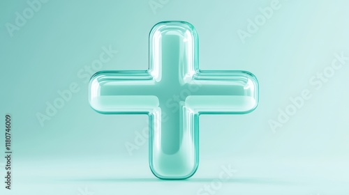 Fototapeta premium A green glass cross with a white outline