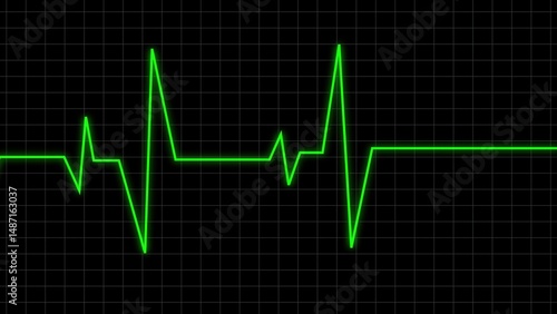 Naklejka premium A green heartbeat monitor line showing a flatline after a period of cardiac...