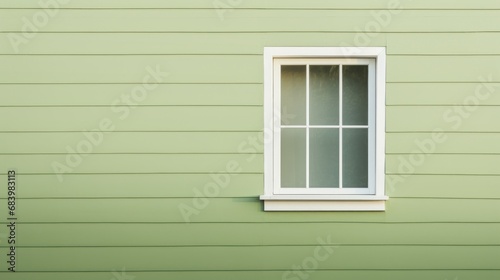 Fototapeta premium a green house with a white window and a white trim on the side of the house...