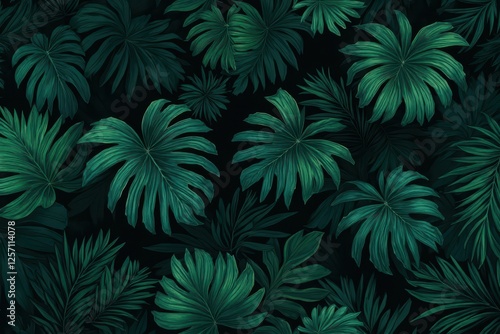 © cff999, Fototapeta premium a green jungle wallpaper with dark green leaves