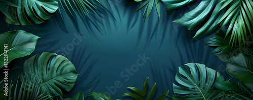 © Studicon, Fototapeta premium A green leafy background with a large leaf in the center