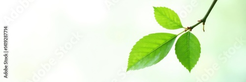 Fototapeta premium A green leafy branch with a few leaves isolated, foliage, twig, plant
