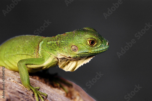 © ImageHit, Obraz premium A green lizard crawling on a branch