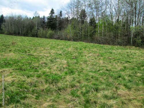 Fototapeta premium A green meadow bordered by a forest