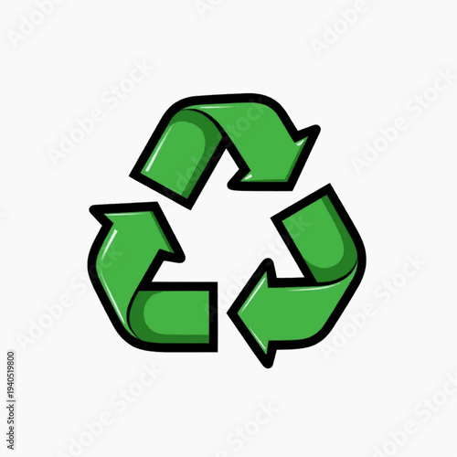 Obraz premium A green recycling symbol with three arrows in a circular motion on a white...
