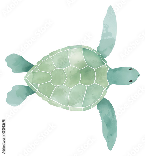 Fototapeta premium A green sea turtle swimming isolated on transparent background.
