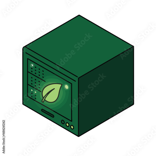 Obraz premium A green server box with a leaf icon and glowing effect
