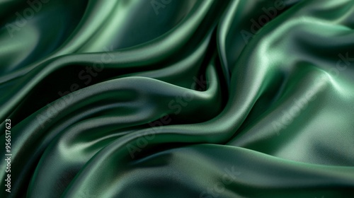 Obraz premium A green silk fabric draped elegantly, smooth and glossy