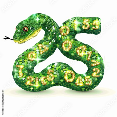 © sennauli, Naklejka premium A green snake made of gemstones with numbers on its body.