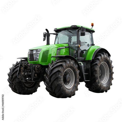 © Majnur, Obraz premium A green tractor with black wheels and a white background