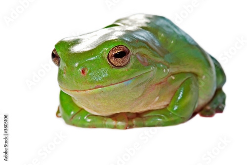 Naklejka premium a green tree frog (litoria caerula) on a white background