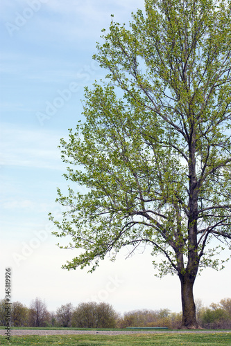 © Amanda, Fototapeta premium A green tree with a blue sky background.
