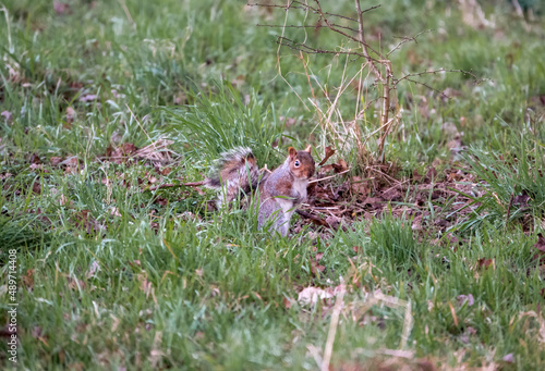 © Martin, Fototapeta premium a grey squirrel (Sciurus carolinensis) searching out seeds and nuts, ground feeding