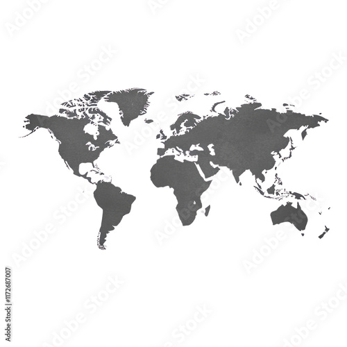 © tope007, Fototapeta premium A grey world map with the continents of Africa, Asia, Europe, North America