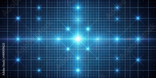 Fototapeta premium A grid pattern with bright star lights in a dark blue background, creating a...