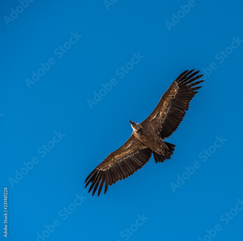 © javarman, Obraz premium A griffon vulture flying in a blue sky