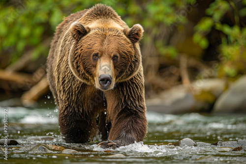 © Hunman, Obraz premium A grizzly bear fishes for salmon in a rushing river.