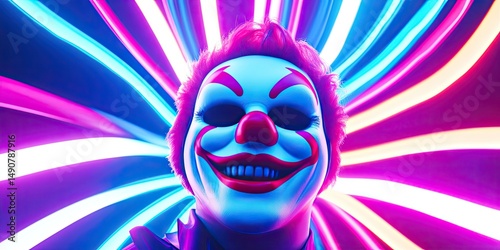 Fototapeta premium A groovy clown mask against a psychedelic spiraling background with bright...