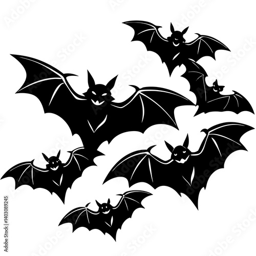 © arshed, Naklejka premium A group of bats flying in formation, minimal vector style