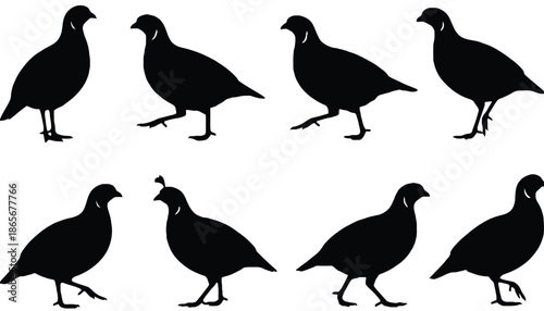 Fototapeta premium A group of black silhouettes of birds walking in different directions