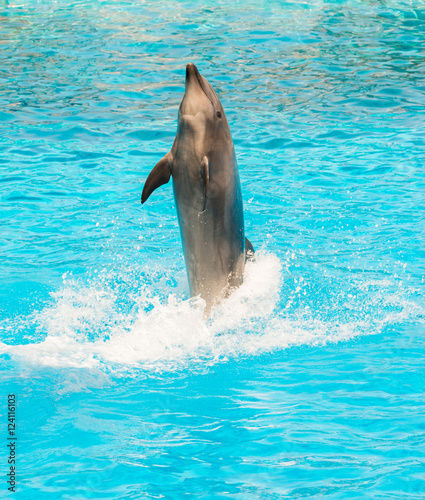 Naklejka premium A group of bottlenose dolphins performing a tail stand