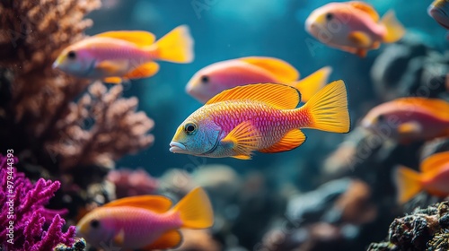 Fototapeta premium A group of brightly colored fish swimming in a coral reef