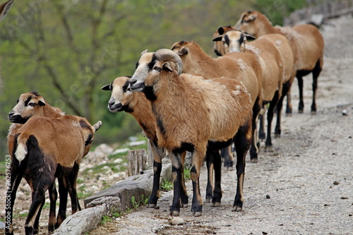© Sandro Amato, Fototapeta premium a group of Cameroon sheep in a row