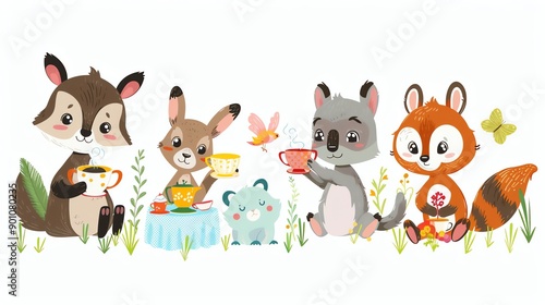 © Galib, Naklejka premium A group of cartoon animals are having tea together.