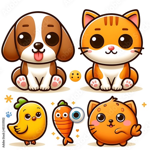 Fototapeta premium A group of cartoon animals eyecat design drawing graphicching optimized...