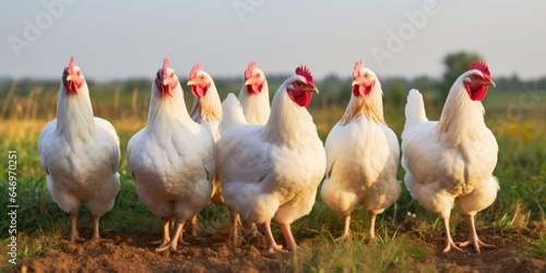 © piai, Fototapeta premium A group of chickens standing next to each other. Generative AI